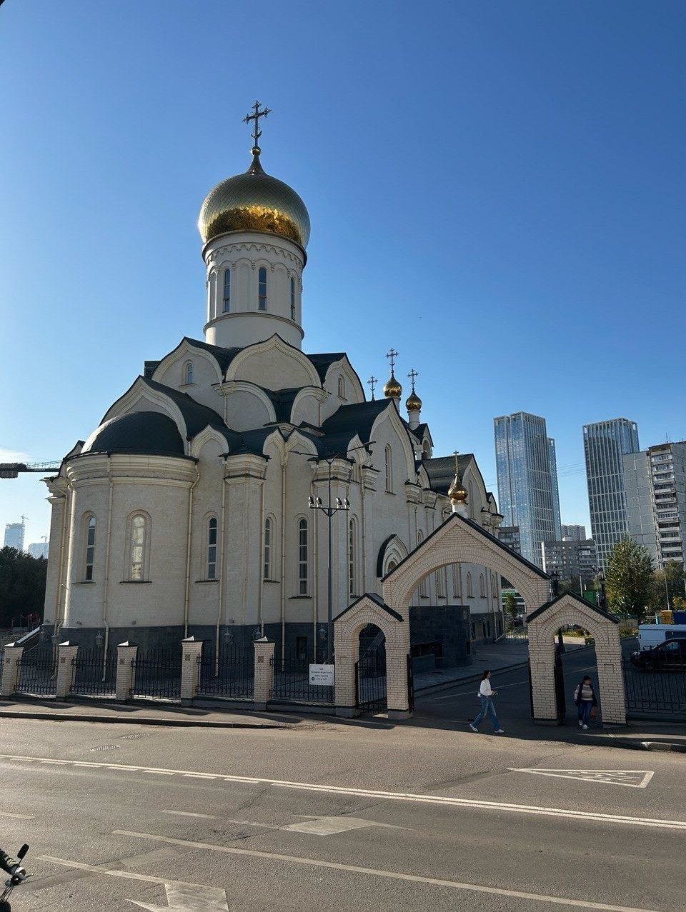 Деревянный храм Покрова Пресвятой Богородицы построен в 2000 г. на месте маленькой часовни (в 2019 г. перенесен на новое место). Строительство основного каменного храма в честь преподобного Андрея Рублева началось в 2008 г. В марте 2016 г. объект включили в Программу строительства православных храмов в г. Москве. 23 июля 2023 г. Святейший Патриарх Московский и всея Руси Кирилл совершил чин великого освящения храма.