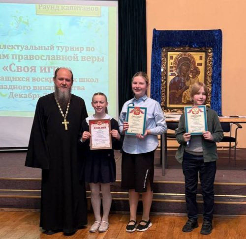 Все участники турнира «Своя игра» получили грамоты и подарки, директорам и педагогам воскресных школ были вручены православные календари на будущий год.