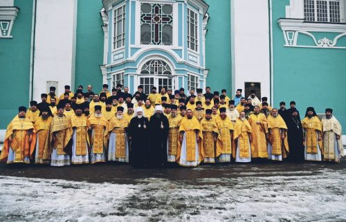 25 ноября в Успенском кафедральном соборе г. Смоленска состоялось вечернее богослужение, которое возглавили митрополит Смоленский и Дорогобужский Исидор и председатель Синодального отдела по взаимодействию с Вооруженными силами и правоохранительными органами, глава Синодального комитета по взаимодействию с казачеством митрополит Ставропольский и Невинномысский Кирилл.