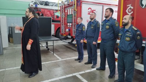 Клирик храма вмч. Георгия на Поклонной горе поздравил пожарных из части № 25 с Пасхой Христовой