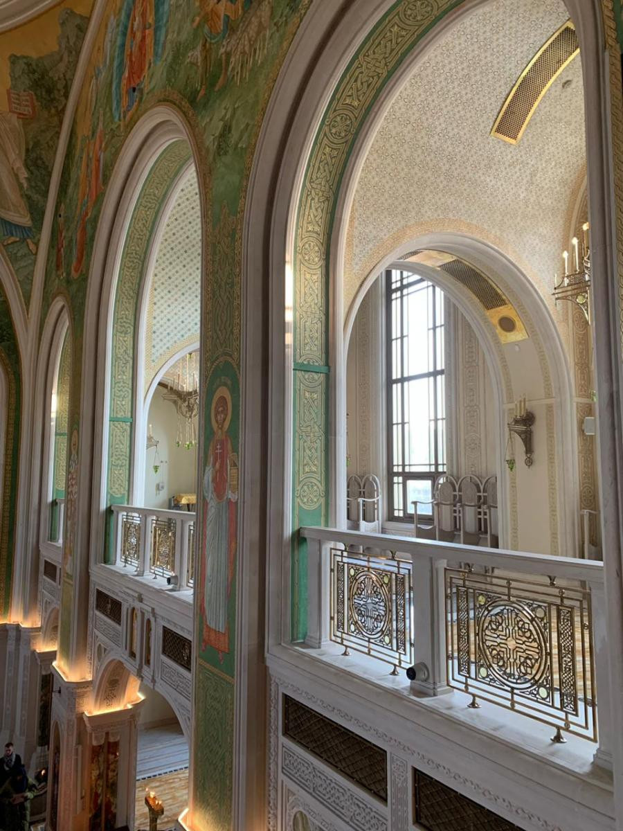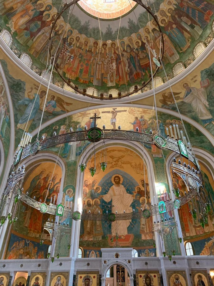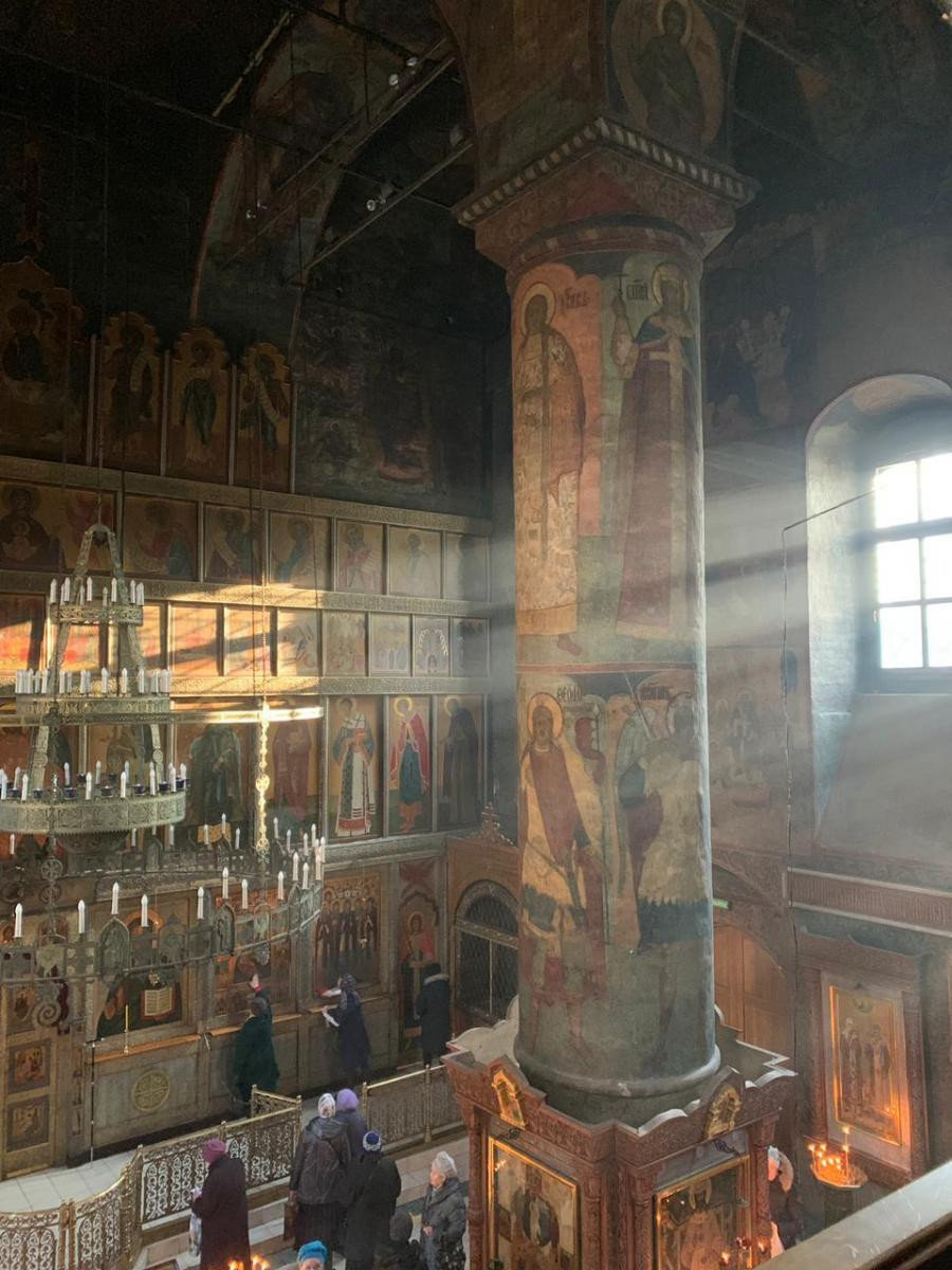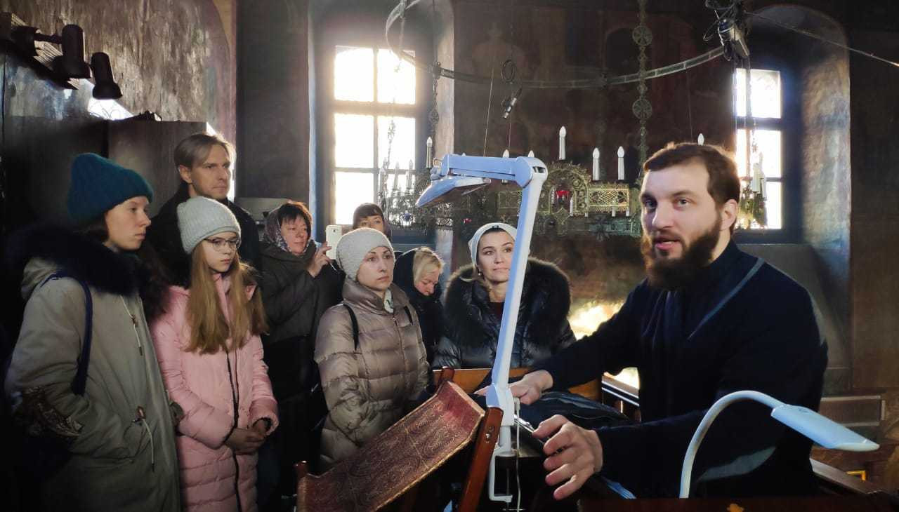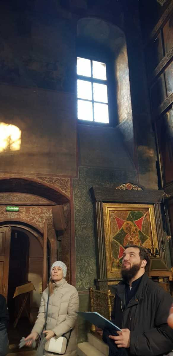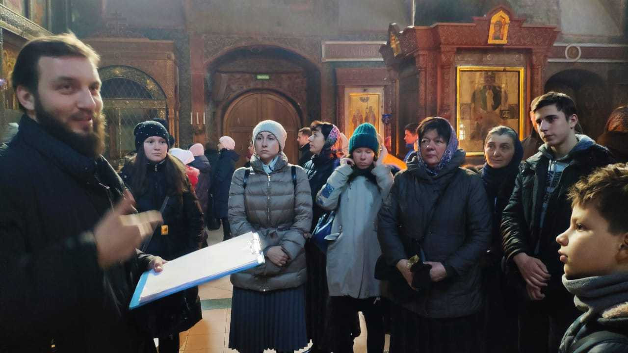 Диакон Артемий Овчаренко, в прошлом окончивший Сретенскую духовную семинарию, сопровождал паломников в качестве гида. Группа посетила оба собора монастыря и семинарию.