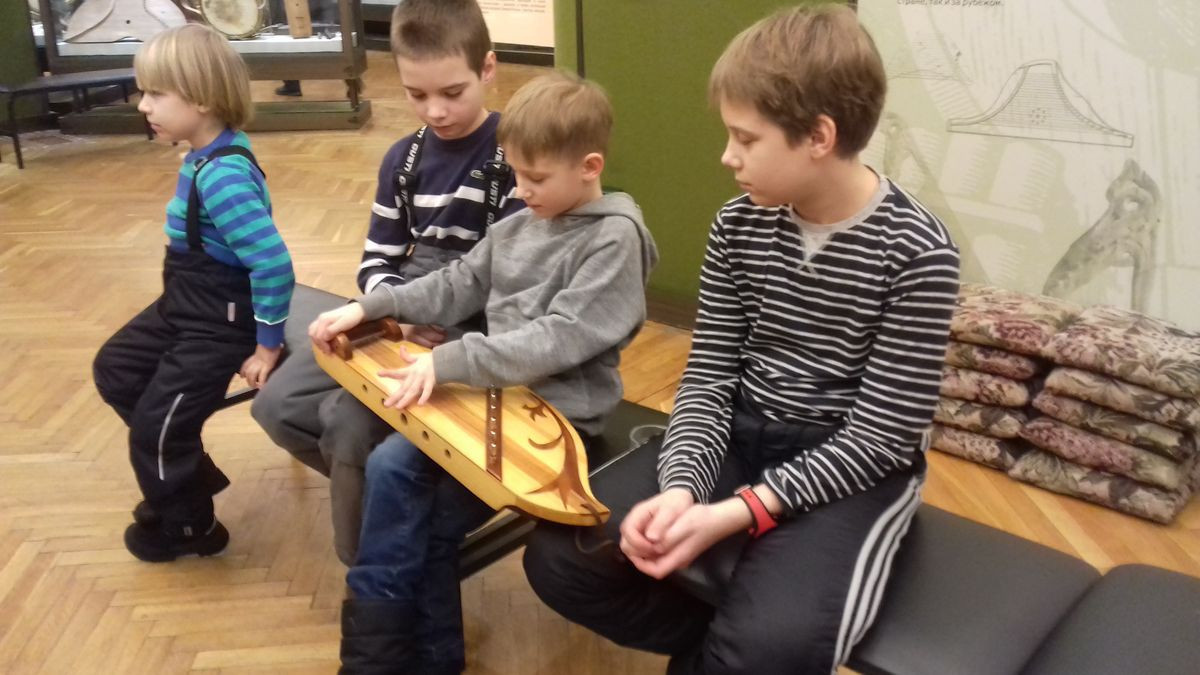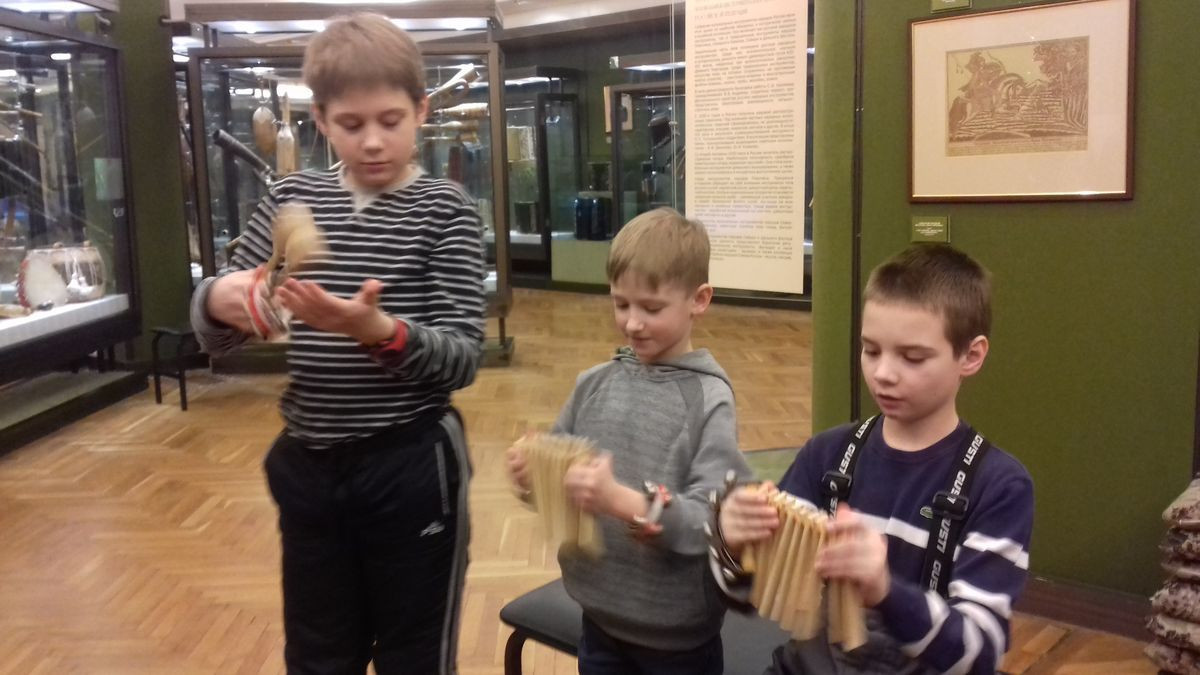 Преподаватель с ребятами побывали на занимательной экскурсии «Корабль странствий». Дети узнали про разные музыкальные инструменты, послушали как они звучат, каждый поиграл на шарманке, как папа Карло, а также поучаствовали в ансамбле русских народных самозвучащих инструментов.