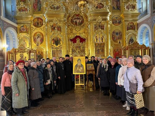 Паломники поклонились святыням храма: иконе с частицей мощей святого великого благоверного князя Александра Невского; иконе святых благоверных князя Петра и княгини Февронии Муромских; иконе преподобного Гавриила (Ургебадзе) Самтаврийского с частицей мощей; иконе священномученика Василия Смирнова; иконе святого великомученика Пантелеимона с частицей мощей; иконе преподобного Сергия Радонежского с частицей мощей; Кресту с частицей Животворящего Креста Господня; частицам святых мощей апостола Павла и святителя Николая Мирликийского.