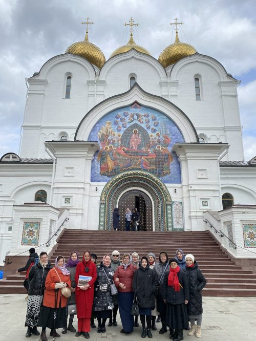 Поклонились святыням храма в честь Покрова Пресвятой Богородицы, храма в честь Воздвижения Креста Господня, Воскресенского собора. Побывали на могилке старца архимандрита Павла (Груздева) на Леонтьевском кладбище.