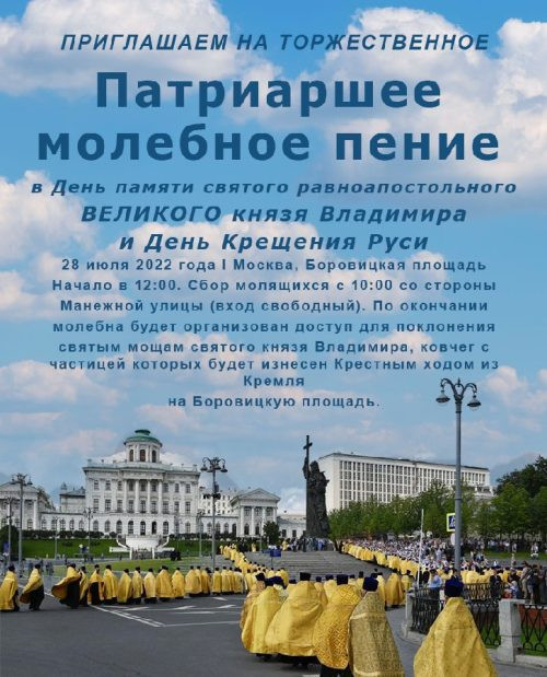 Приглашаем на молебное пение в праздник Крещения Руси