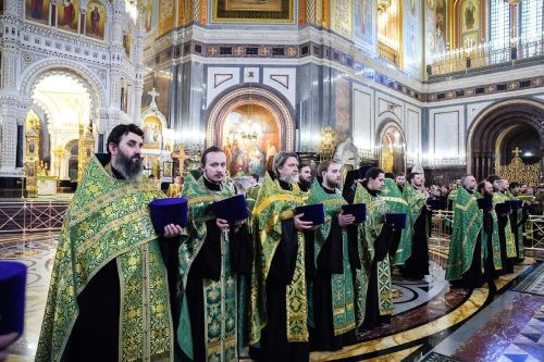 В канун празднования Входа Господня в Иерусалим Святейший Патриарх Московский и всея Руси Кирилл совершил всенощное бдение в кафедральном соборном Храме Христа Спасителя в Москве.