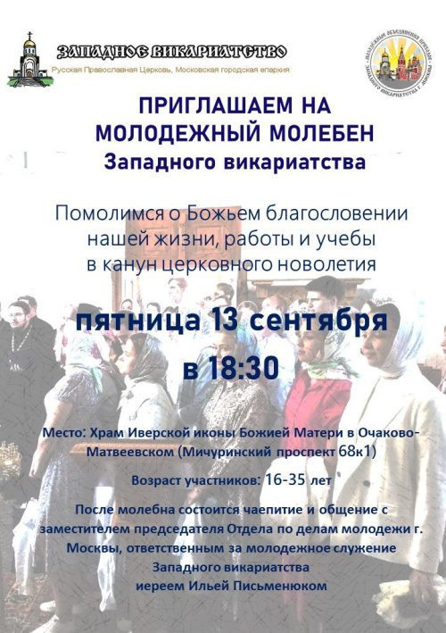Православная молодежь Западного викариатства приглашает всех желающих на Молодежный молебен в канун церковного новолетия.