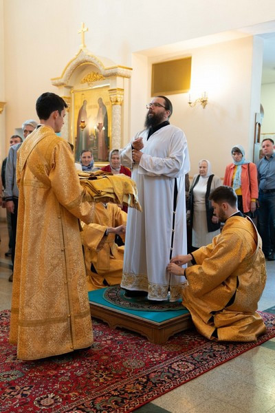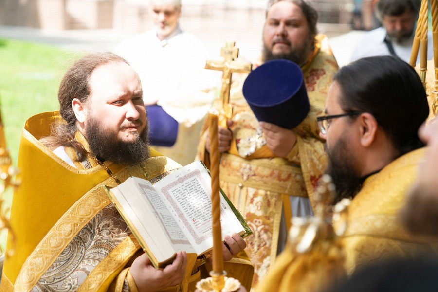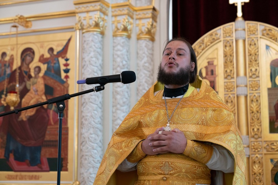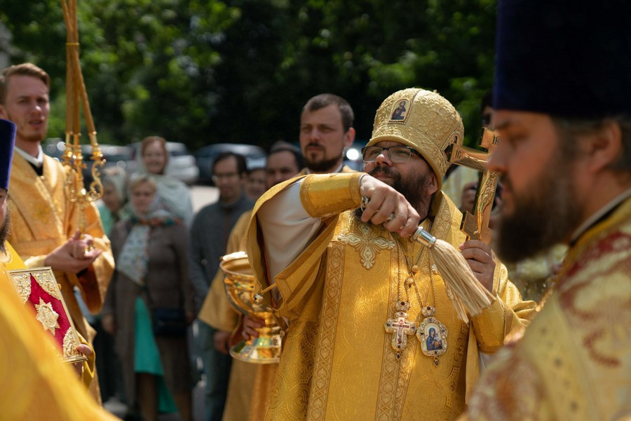 После крестного хода священник Александр Нарушев от лица клира и прихожан обратился к владыке Матфею и поблагодарил его за молитвенное предстательство и святительское благословение.