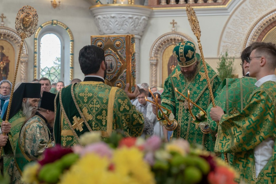 По окончании богослужения владыка Фома поздравил всех с престольным праздником и передал собравшимся первосвятительское благословение Святейшего Патриарха Московского и всея Руси Кирилла с пожеланиями крепости веры и помощи Божией.