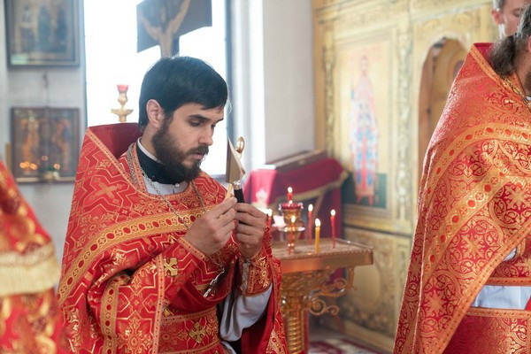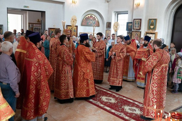 На Божественной Литургии присутствовали как постоянные прихожане, так и гости прихода. Молитвенную атмосферу праздника дополнил хор под управлением регента Марии Петуховой. Фоторепортаж с богослужения вел Владимир Ведерников, который является постоянным прихожанин храма. Иерей Иоанн Новиков произнес проповедь, в которой особо остановился на значении подвига Священномученика Ермогена для потомков.