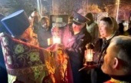 В преддверии праздника Светлого Христова Воскресения по благословению председателя Синодального отдела по делам молодежи епископа Истринского Серафима более 50 скаутов Организации российских юных разведчиков из Московской и Калужской областей, Москвы и Санкт-Петербурга в ожидании специального рейса, доставившего в Россию Благодатный огонь, собрались в храме Воскресения Христова в поселке Толстопальцево г. Москвы, расположенном недалеко от аэропорта Внуково-3.