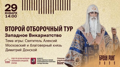 Отдел по делам молодёжи Московской епархии при поддержке Комитета общественных связей и молодежной политики города Москвы приглашает православную молодежь столицы на Вторую отборочную игру среди команд Западного викариатства интеллектуальной игры Брейн-ринг.