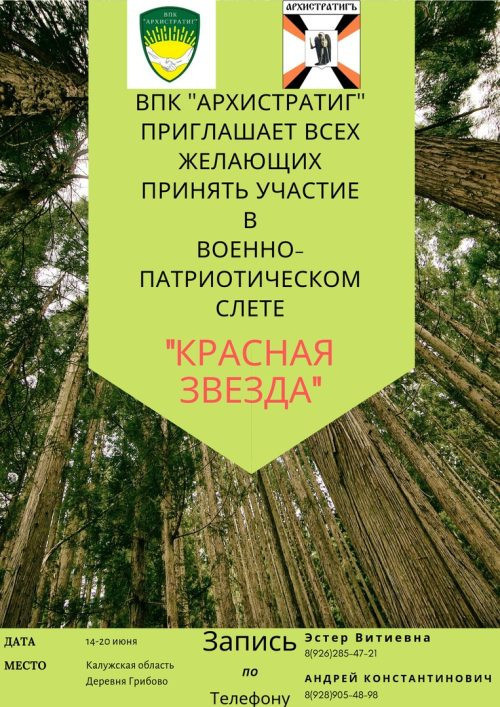 Военно-патриотический слет 12 мая 2019 ВПК Архистратиг приглашает всех желающих принять участие в военно-патриотическом слете «Красная звезда».