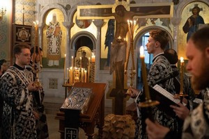 По завершении пассии верующие поклонились Распятию, вынесенному на середину храма и символизирующему Голгофу.
