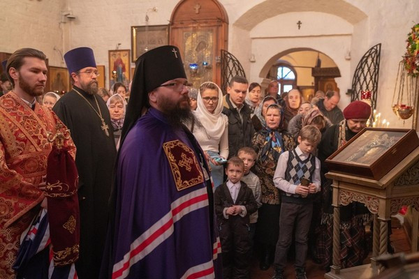 По окончании Богослужения настоятель прот. Сергий приветствовал архиепископа Матфея от лица клира и прихожан и подарил Владыке на молитвенную память аналойную икону Пресвятой Богородицы «Достойно есть» (написанную на Св. Горе Афон). В ответ Управляющий викариатством поздравил всех молившихся с воскресным днем и обратился с архипастырским словом, в котором подчеркнул: «Сегодня особый день для нашей Церкви. Наверное, его можно назвать вторым днем рождения, когда мы вспоминаем наших Новомучеников и Исповедников Церкви Русской. … Как говорят отцы-апологеты, что кровь мучеников – это семя христианства. Благодаря подвигу наших Новомучеников и Исповедников мы имеем возможность видеть рассвет веры Православной на Руси».