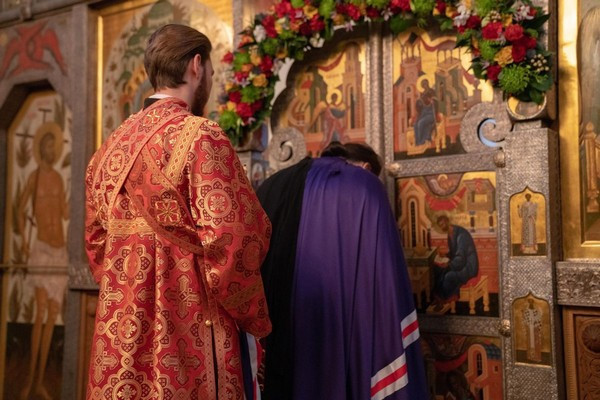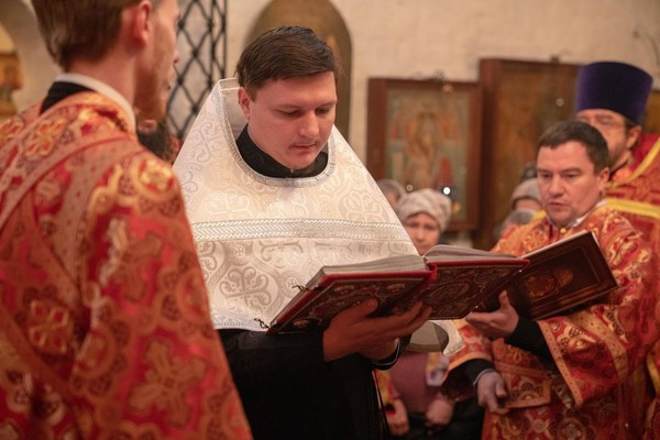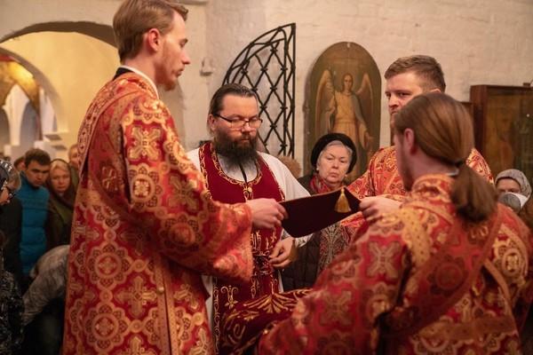 Диаконский чин возглавил протодиакон Василий Куфлик, клирик храма Тихвинской иконы Божьей Матери в Алексеевском г. Москвы. Ему сослужил клирик храма Живоначальной Троицы в Троице-Голенищеве протодиакон Борис Поваров.