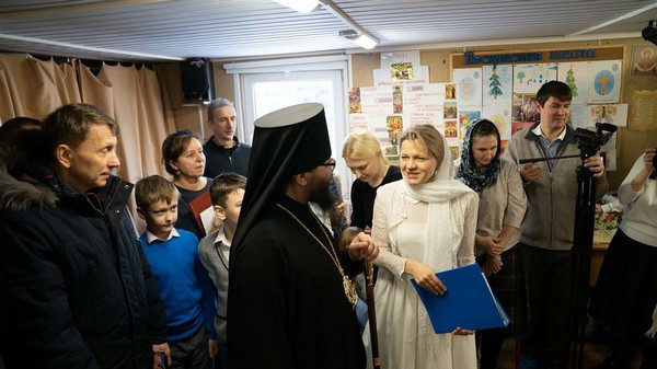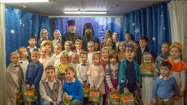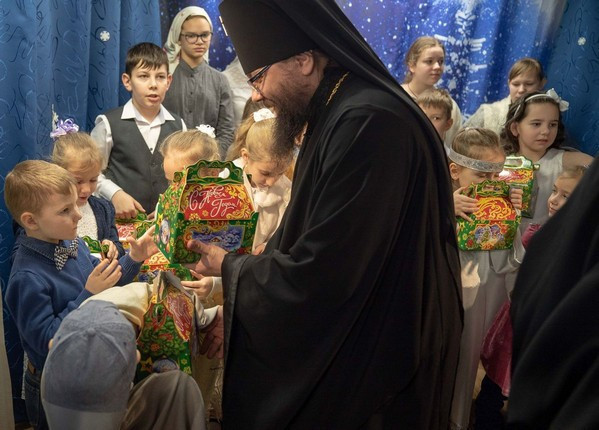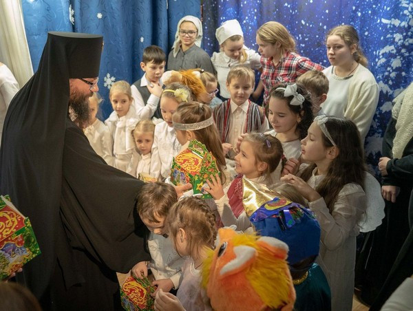 По окончании богослужения Владыка поздравил деток воскресной школы с Рождеством Христовым и подарил им сладкие подарки!