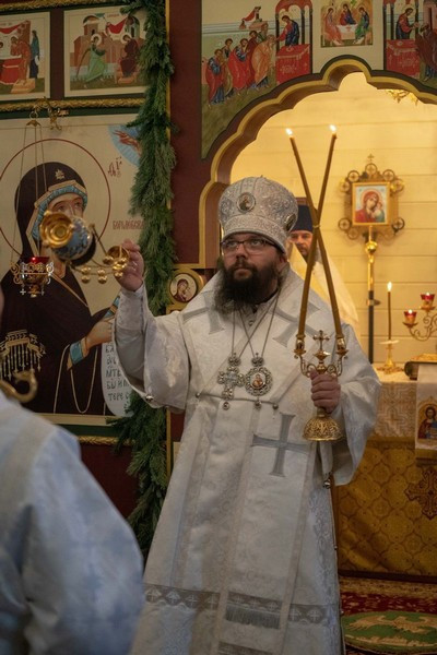 Дорогой Владыка поблагодарил настоятеля, причт и прихожан храма, поздравил с отданием праздника Рождества Христова, призывая всех благодарить Бога за все добрые дела и благодеяния, за все что Бог дает в нашей жизни.