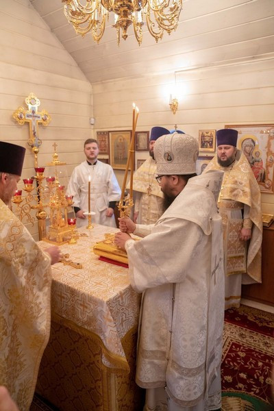 Завершая богослужение, настоятель храма обратился к Архиепископу Матфею с приветственным и поздравительным словом, поблагодарив за всю помощь оказанную Дорогим Владыкой в строительстве храма.