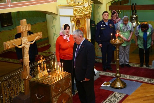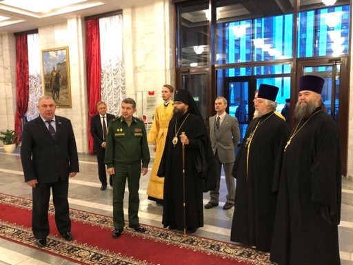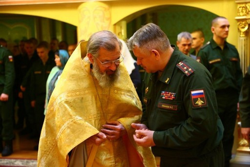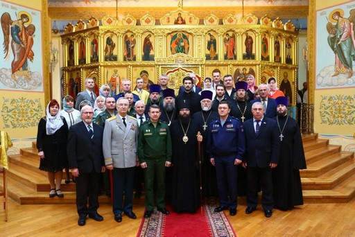Ему сослужили Благочинный Михайловского церковного округа протоиерей Георгий Студёнов, настоятель храмов Архистратига Божия Михаила при ВАГШ ВС РФ и преподобного Андрея Рублева в Раменках г. Москвы протоиерей Андрей Галухин, а также клирики храма преподобного Андрея Рублева в Раменках. Диаконский чин возглавил протодиакон Василий Куклик. В Богослужении приняли участие генералы, офицеры и гражданский персонал академии, военнослужащие, проходящие военную службу по призыву.