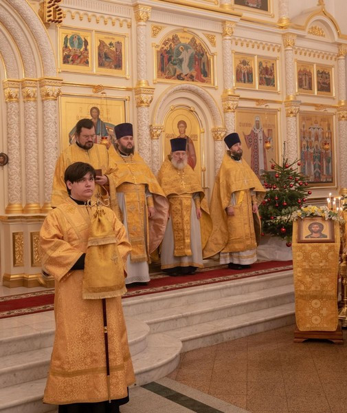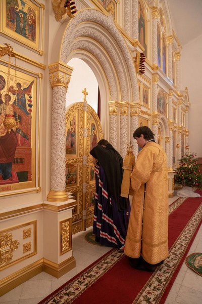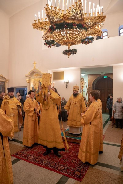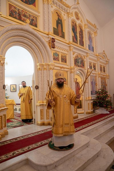 Дорогой Владыка поблагодарил настоятеля, причт и прихожан храма, поздравил с наступающими Рождественскими торжествами. В своем слове владыка Матфей вспомнил подвижническое служение святителя Петра, которое положило начало объединению земель русских вокруг Московского княжества.