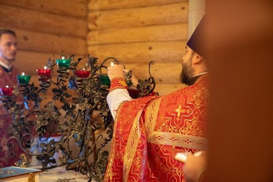 Завершая богослужение настоятель храма поблагодарил Высокопреосвященнейшего Владыку за тёплые молитвы о прихожанах храма и подарил образ святителя Игнатия Богоносца, выполненный в технике древнерусской иконописи.