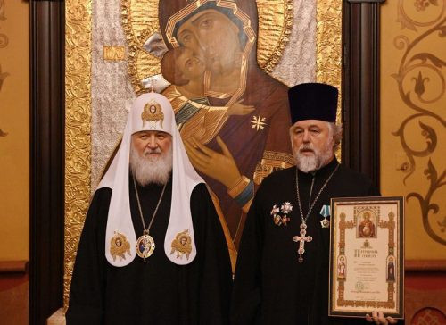 Во внимание к помощи в строительстве храмового комплекса Воскресения Христова в Толстопальцеве г. Москвы и в связи с 80-летием со дня рождения Святейший Патриарх Кирилл наградил В.Г. Пономаренко, помощника настоятеля (старосту) храма Воскресения Христова в Толстопальцеве г. Москвы, орденом святого благоверного князя Даниила Московского II степени.