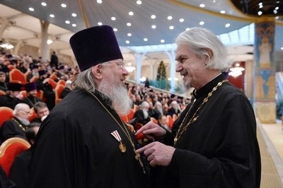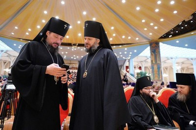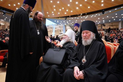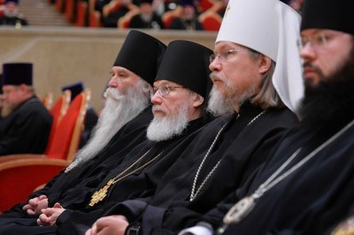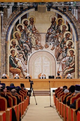 В президиуме собрания присутствуют: Патриарший наместник Московской епархии митрополит Крутицкий и Коломенский Ювеналий; управляющий делами Московской Патриархии митрополит Санкт-Петербургский и Ладожский Варсонофий; председатель Отдела внешних церковных связей Московского Патриархата митрополит Волоколамский Иларион; первый викарий Святейшего Патриарха по г. Москве митрополит Истринский Арсений; секретарь Святейшего Патриарха по г. Москве протопресвитер Владимир Диваков.