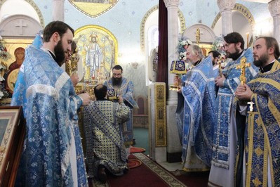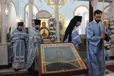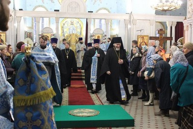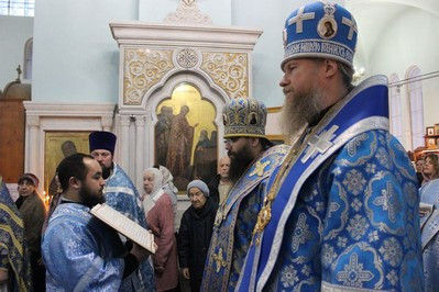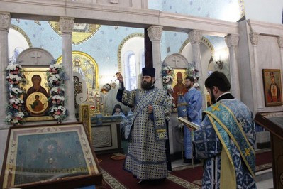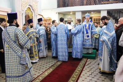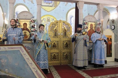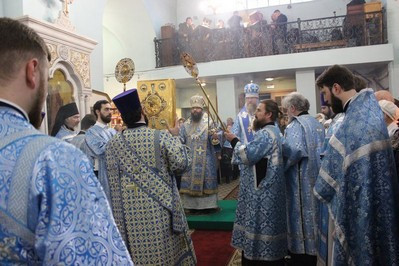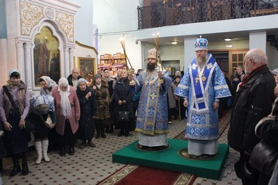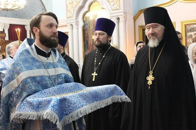 По окончании богослужения Высокопреосвященный Матфей обратился к присутствующим с архипастырским словом, тепло поздравил всех с праздником. Настоятель храма епископ Ипатий поблагодарил владыку Матфея за совместную молитву и рассказал о своем новом служении в Анадырской и Чукотской епархии.