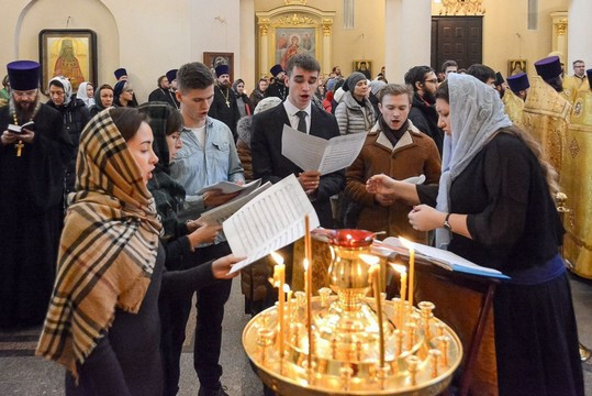 За богослужением пели хор храма праведного Иоанна Русского (регент А. Меркушев), хор храма святителя Димитрия Ростовского в Очакове и молодежный хор Западного викариатства, которые пропели славление святому апостолу Матфею. На сугубой ектении прозвучали прошения об архиепископе Матфее.