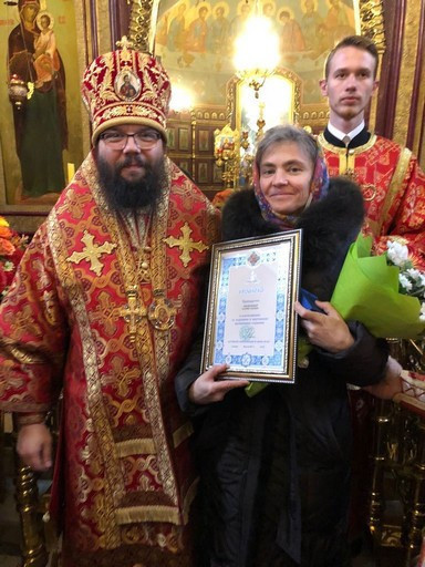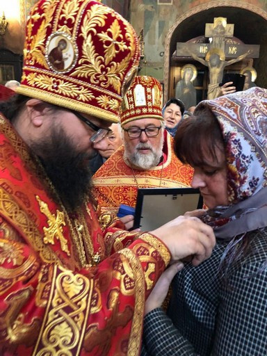 Божественная литургия в храме Архистратига Михаила в Тропарево 21 ноября 2018 После совершения крестного хода, Владыка вручил ордена и грамоты многодетным матерям.