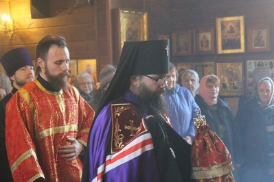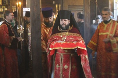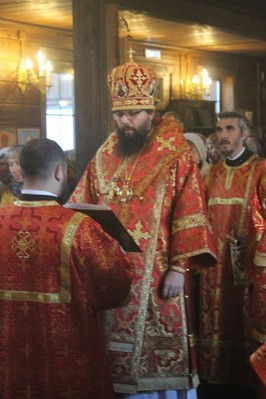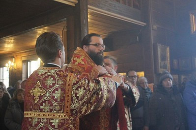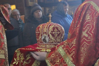 Владыке сослужили Благочинный храмов Георгиевского округа г. Москвы протоиерей Серафим Недосекин, настоятель храма святителя Спиридона Тримифунтского в Фили-Давдково протоиерей Илья Кочуров, настоятель храма священномученика Игнатия Богоносца на Верейской иеромонах Иона (Голов), настоятель храма Благовещения Пресвятой Богородицы в Федосьино иерей Андрей Пирог. После Божественной Литургии Владыка Матфей поздравил прихожан с Престольным праздником, а также вручил Патриаршие знаки материнства многодетным мамам: Кочуровой Анастасии, Колесниковой Татьяне, Гужевой Алле.