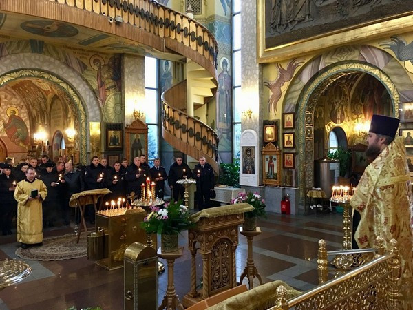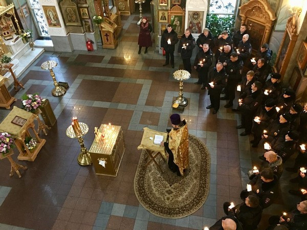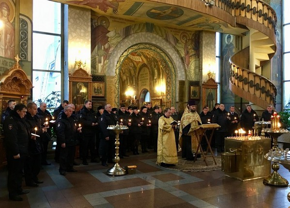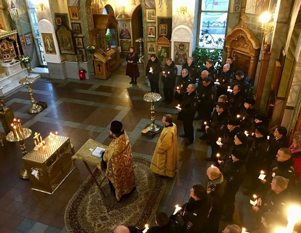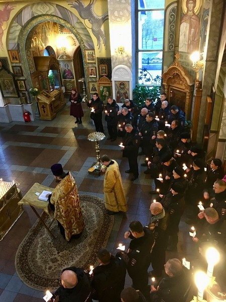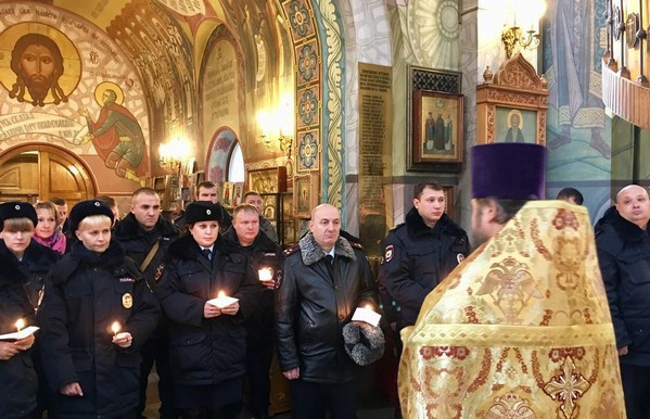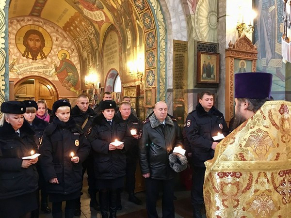 В завершении, в память обо всех, отдавших жизнь на боевом посту, защищая спокойствие и безопасность граждан, сотрудники полиции зажгли в храме памятные свечи.