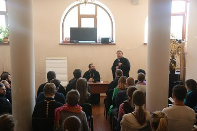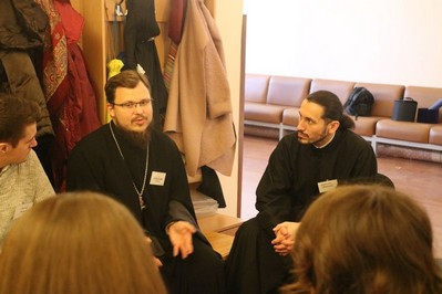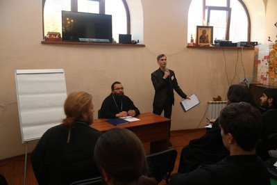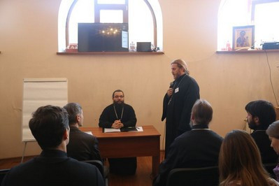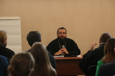 Об особенностях психологии молодого человека рассказала психолог Ольга Владимировна Балабанова, выступили докладчики протоиерей Сергий Тишкун, клирик храма Рождества Пресвятой Богородицы в Крылатском, иерей Алексей Соловьев, клирик храма Воскресения Христова в Толстопальцеве и Анастасия Кантар, ответственная по молодежной работе в храме прп.Сергия Радонежского в Солнцево.