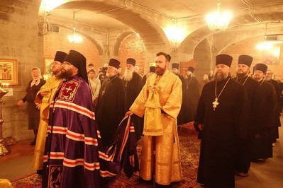 Архиепископу Матфею сослужили: благочинный храмов Михайловского округа прот. Георгий Студёнов, благочинный храмов Георгиевского округа прот.Серафим Недосекин, настоятель храма прот.Андрей Галухин, настоятели и духовенство храмов Западного викариатства и г.Москвы.