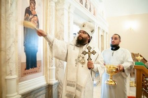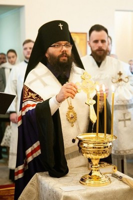 Его Высокопреосвященству сослужили: благочинный Михайловского округа протоиерей Георгий Студенов, настоятель храма святых равноапостольных Кирилла и Мефодия при МГУ протоиерей Иоанн Лапидус, настоятель храма святой мученицы Татианы при МГУ протоиерей Владимир Вигилянский, настоятель храма святого благоверного князя Александра Невского при Московском государственном институте международных отношений (Университете) протоиерей Игорь Фомин, настоятель храма священномученика Игнатия Богоносца на Верейской г. Москвы иеромонах Иона (Голов).