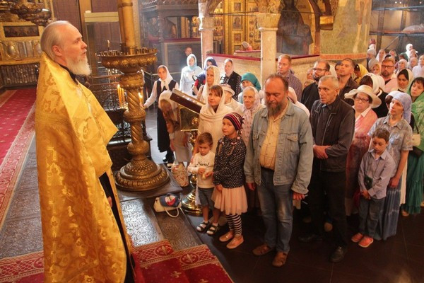 На запричастном проповедовал протоиерей Вадим Леонов, клирик Патриаршего подворья храмов в Зарядье.