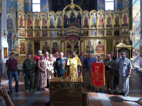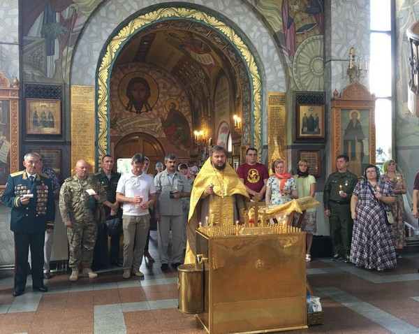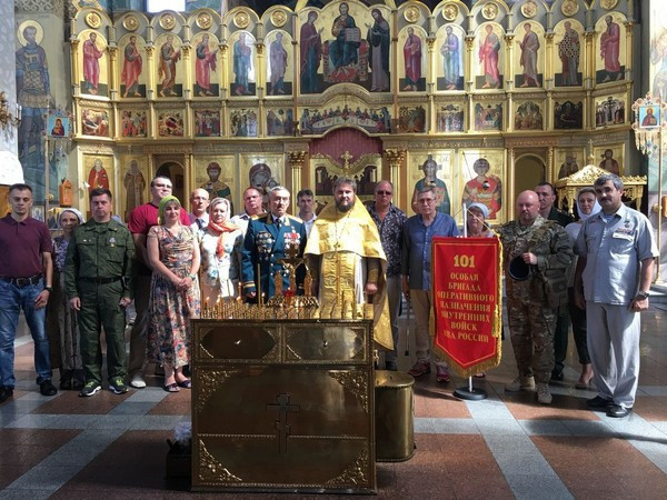 При большом стечении народа настоятель храма протоиерей Серафим Недосекин совершил заупокойное богослужение о воинах, отдавших свой последний долг Родине: за веру и Отечество живот свой положивших. По окончании панихиды о. Серафим обратился ко всем присутствующим со словами утешения и поддержки, пожелав помощи Божией в совершении благих дел и вручил каждому, на молитвенную память, Молитвослов православного воина.