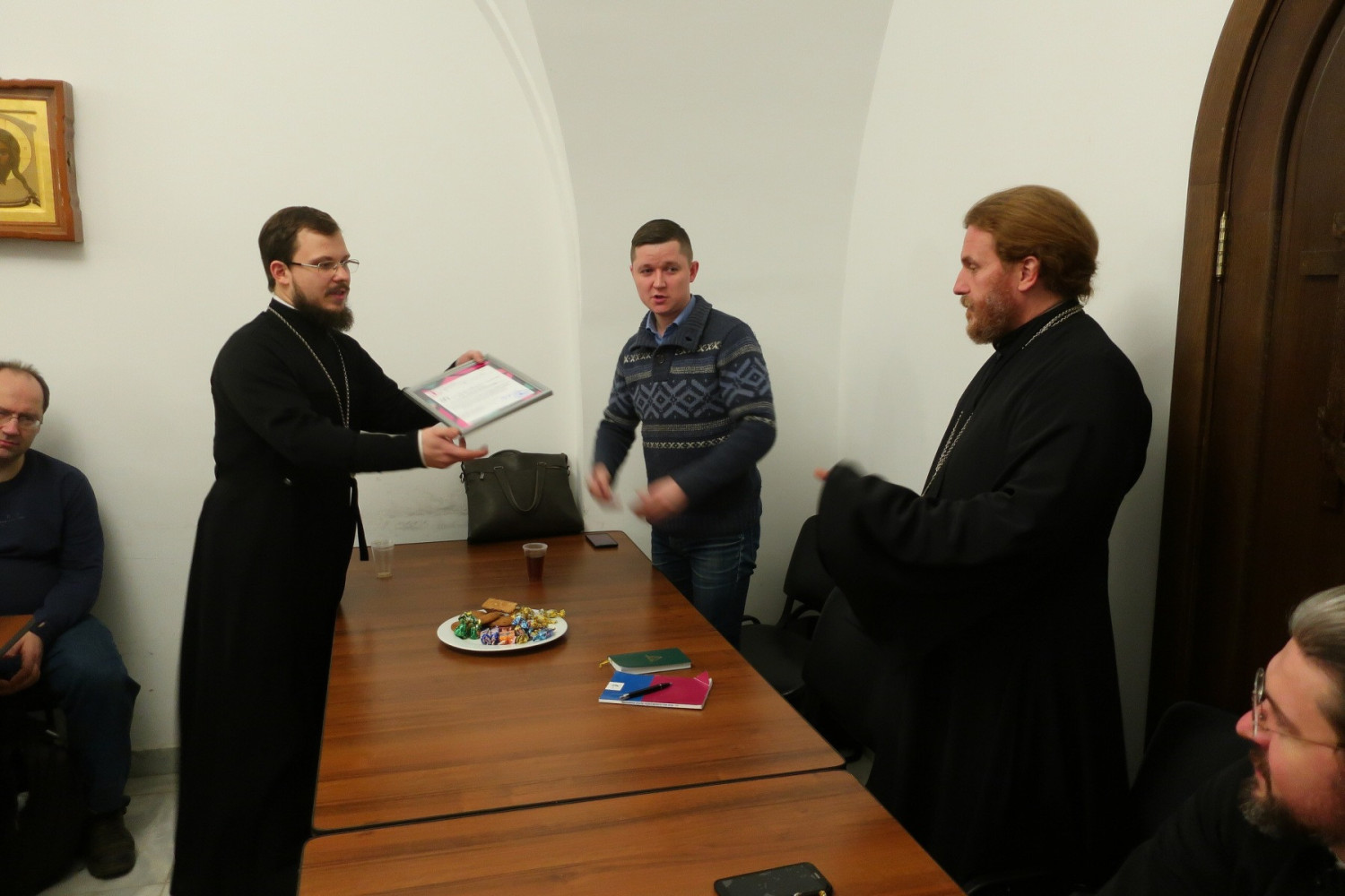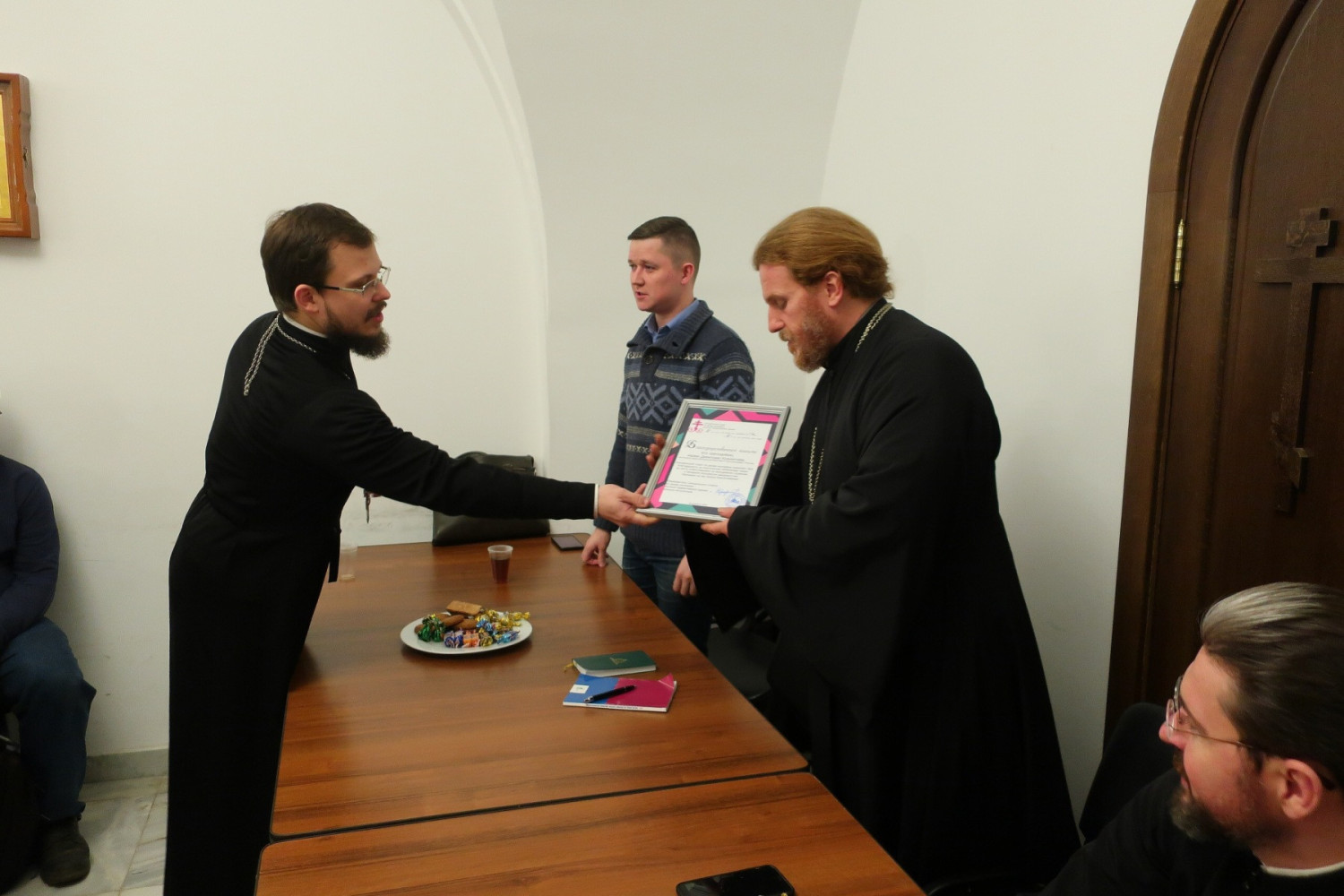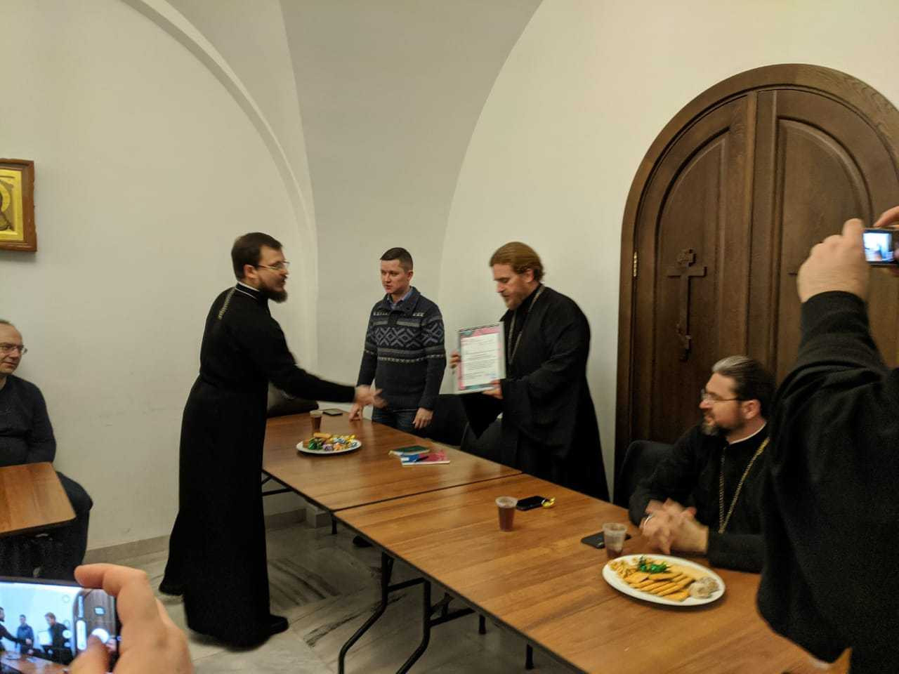 По завершении молебна иерей Димитрий поблагодарил всех за многолетнюю совместную работу на ниве молодёжного служения и представил новоназначенного помощника викария по молодёжному служению в Западном викариатстве — священника Алексия Соловьёва, являющегося заместителем председателя Синодального отдела по делам молодёжи Русской Православной Церкви. Отец Алексий, в свою очередь, передал слова благодарности от имени управляющего викариатством, а также огласил слова благодарственной грамоты Синодального отдела по делам молодёжи, которую вручил отцу Димитрию.