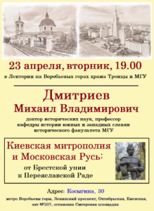23 апреля, во вторник, в 19.00 в Лектории на Воробьевых горах храма Троицы и МГУ