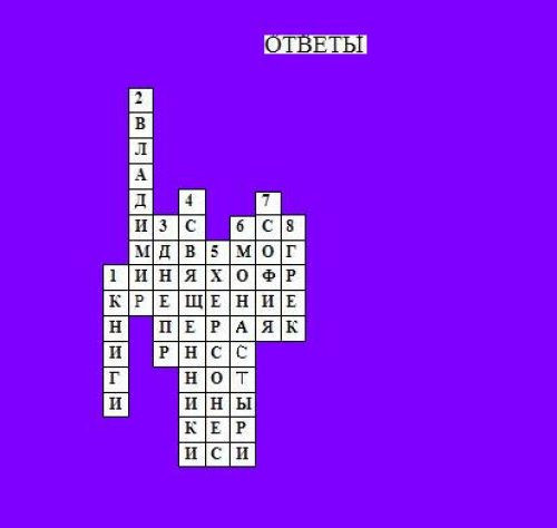 Перед началом нового учебного года в храме святителя Димитрия Ростовского в Очакове всем приходом решали кроссворд по истории Русской Церкви. Викторина прошла в онлайн-режиме, всем участникам (а возрастных ограничений не было), чтобы заполнить пустующие клеточки, нужно было вспомнить важные события из истории нашего государства. Кроссворд был размещен в приходской группе «Вконтакте». Ответы можно было присылать в комментариях. Добавим, ответив на все поставленные вопросы, можно было узнать, какое событие стало поворотным в русской истории.