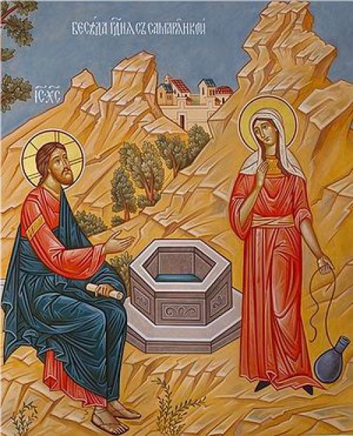 В пятое воскресенье по Пасхе Церковь вспоминает эпизод, описанный в Евангелии от Иоанна – беседу Христа с женщиной-самарянкой. В ее лице Церковь представляет нам образ грешницы, ищущей спасения и готовой услышать призывный глас Спасителя. Возвращаясь из Иудеи в Галилею, Иисус Христос со Своими учениками проходил через Самарию. Между иудеями и самарянами существовала вековая вражда, но это был кратчайший путь. Другая дорога – в обход Самарии – лежала через Иордан по восточному берегу реки, потом еще раз через Иордан, и она занимала вдвое больше времени.