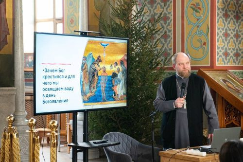 Программа акции открылась 18 января лекцией «Зачем Бог крестился и зачем мы освящаем воду в день Богоявления» настоятеля храма иерея Александра Волкова. Отец Александр подробно раскрыл богословский смысл праздника, ответил на ключевые вопросы о традициях Крещения Господня и освящения воды.