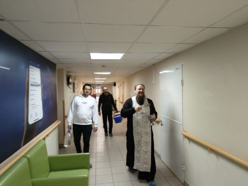 Разделившись на четыре группы, священнослужители поздравили медицинский персонал и пациентов больницы с праздником, исполнив традиционные крещенские песнопения.