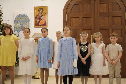 Праздник начался с выступления христославов из храма свт. Димитрия Ростовского в Очаково. Гости пропели тропарь Рождества Христова и несколько колядок.