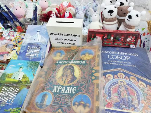 Продукция на ярмарке была представлена самая разнообразная: православные взрослые и детские книжки, календари, авторские самодельные игрушки, сшитые прихожанкой храма, ангелочки, платки на голову, нарядные полотенца.