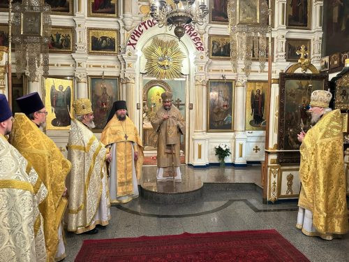 Его Высокопреосвященству сослужили протопресвитер Владимир Диваков, архимандрит Стефан и духовенство храма.