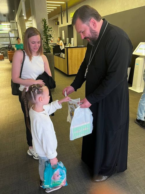 31 мая 2025 года, в канун Дня защиты детей, священник Андрей Шишкин, ответственный за социальное служение Западного викариатства, настоятель храма иконы Божией Матери «Неувядаемый Цвет» в Рублево и иеромонах Иона (Голов), настоятель храма священномученика Игнатия Богоносца на Верейской улице привезли подарки для детей участников СВО в Единый центр поддержки, Московский филиал Фонда «Защитники Отечества».