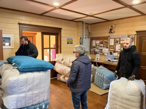 Также в состав гуманитарного груза вошли 30 постельных комплектов (подушка, одеяло, постельное белье). Их передала социальная служба храма Трех Святителей в Раменках.