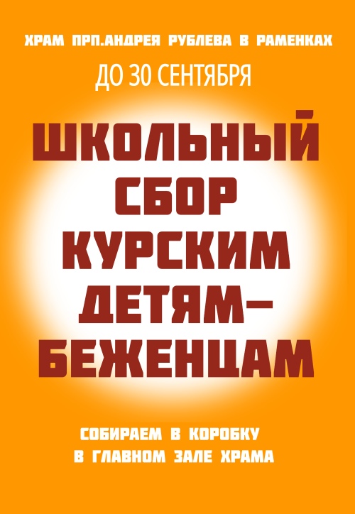 В храме прп. Андрея Рублева в Раменках по благословению настоятеля протоиерея Андрея Галухина объявлен сбор школьных товаров для детей-беженцев из Курской области.